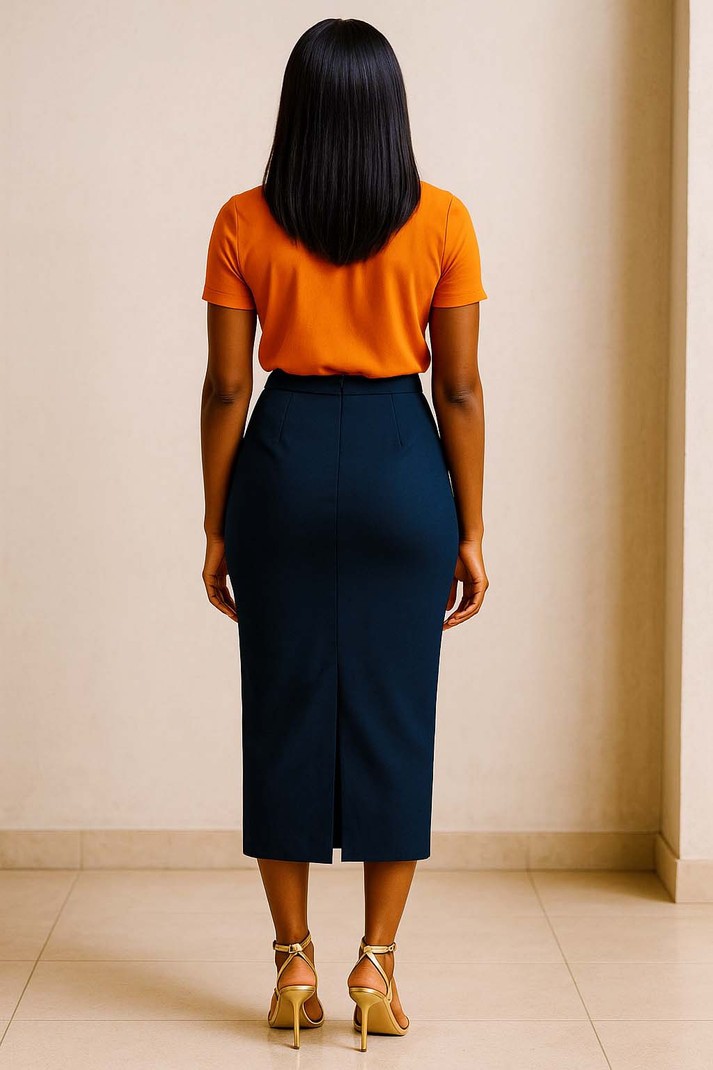 This navy blue midi skirt is crafted from a cotton and elastane blend for a comfortable fit. With a relaxed silhouette and asymmetrical hem, this stylish skirt will be a go-to item for your wardrobe.