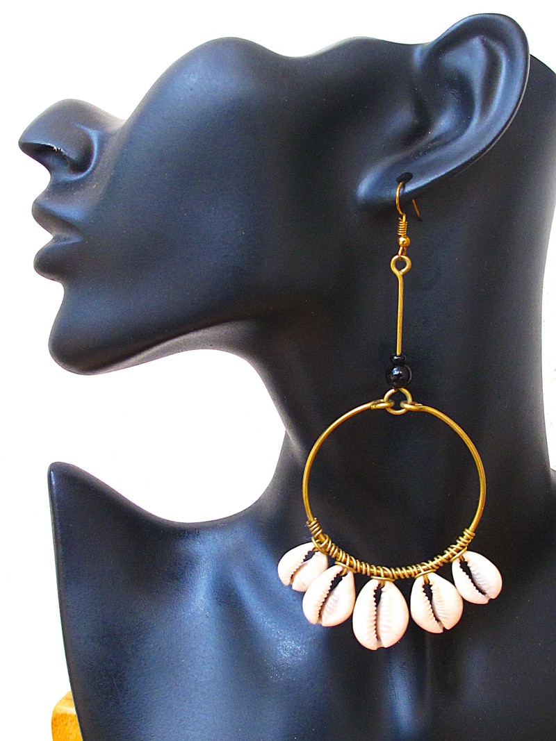 Bijoux Boucles d'oreille Pendantes et gouttes name_fr: Blanc name_fr: Pour Elle name_fr: Boucles D'oreille Percées name_fr: Laiton name_fr: Cauris