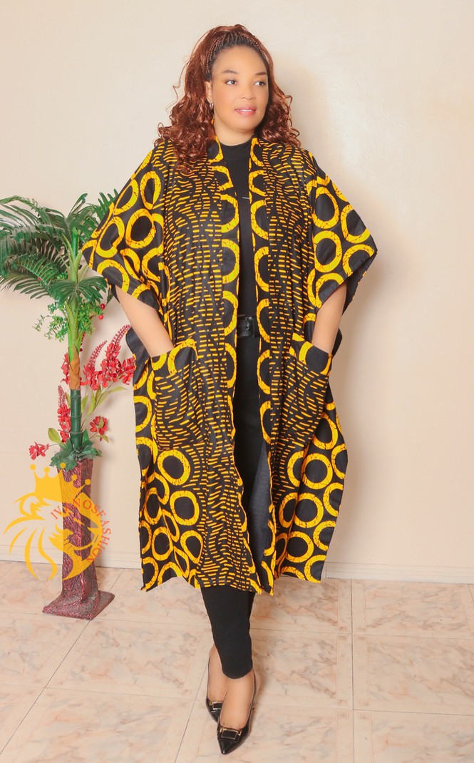 A classic African print kimono jacket to rock a special occasion. It's fully lined and comes with pockets.