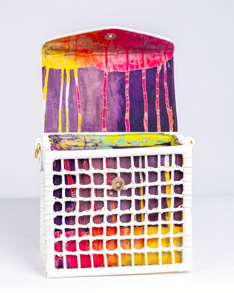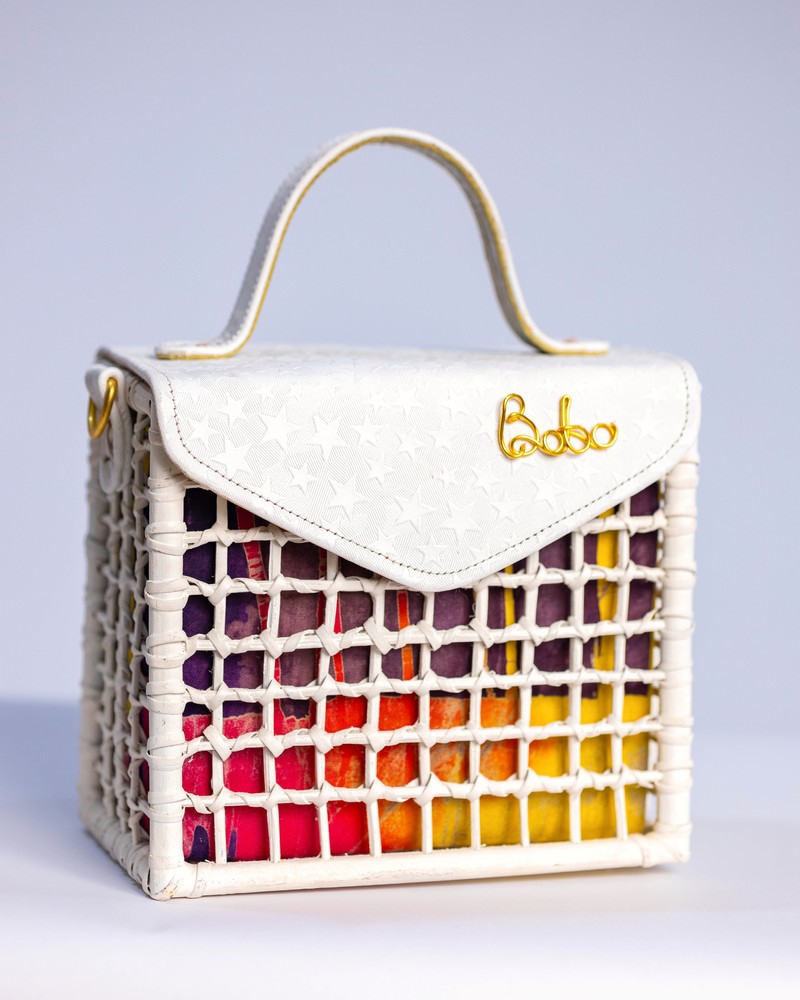 Sacred White “Peace in every stitch.” For moments when your style speaks in whispers Made with 100% Cane & Eco leather Intricately Woven Sustainably dyed Made in Ghana Dimensions; Breadth: 8inches Length: 7inches Width: 4.5inches