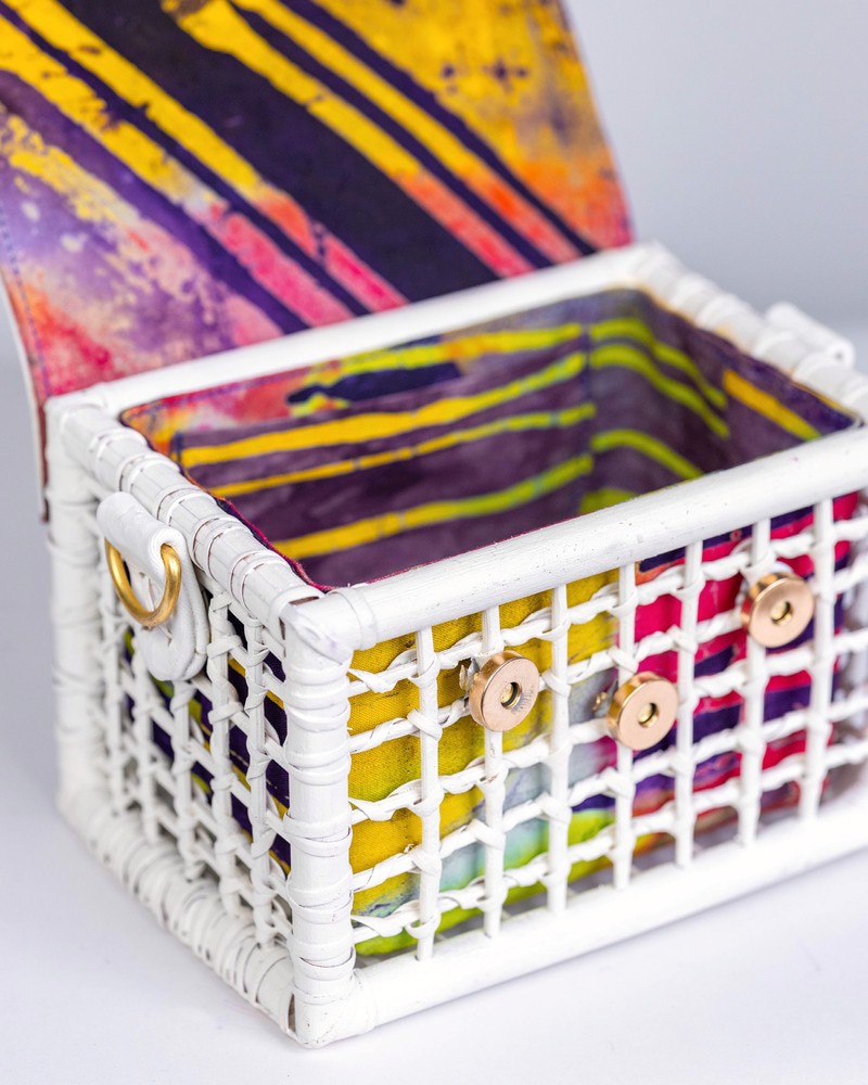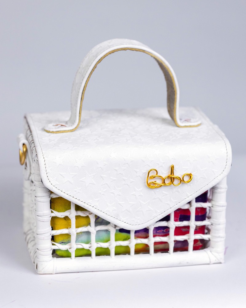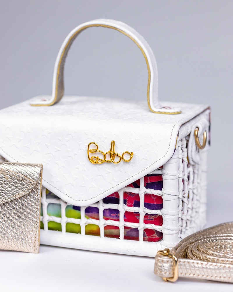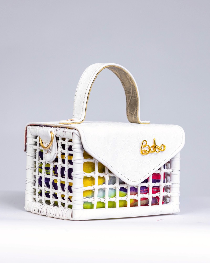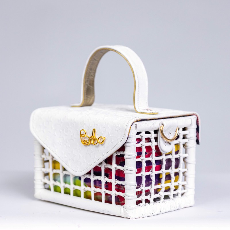 Sacred White “Peace in every stitch.” For moments when your style speaks in whispers Made with 100% Cane & Eco leather Intricately Woven Sustainably dyed Made in Ghana Dimensions; Breadth: 5inches Length: 7inches Width: 4.5inches