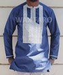 Jolie tunique bleue en coton avec une broderie argentée.