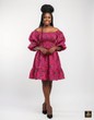 Turn heads in this charming pink off-shoulder smocked dress. Made from vibrant Ankara fabric, it features a fitted smocked bodice that flatters your figure and voluminous puff sleeves that add a touch of drama. The flared skirt gives it a playful and feminine finish, making it ideal for brunch dates, parties, or casual gatherings where comfort meets chic style.