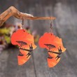 Pair of Vintage Wooden Earrings - Africa Map & Sunset Silhouette Design, Recycled Wood with Iron Hooks, Lightweight Everyday Jewelry for Women, Cultural Geography Art