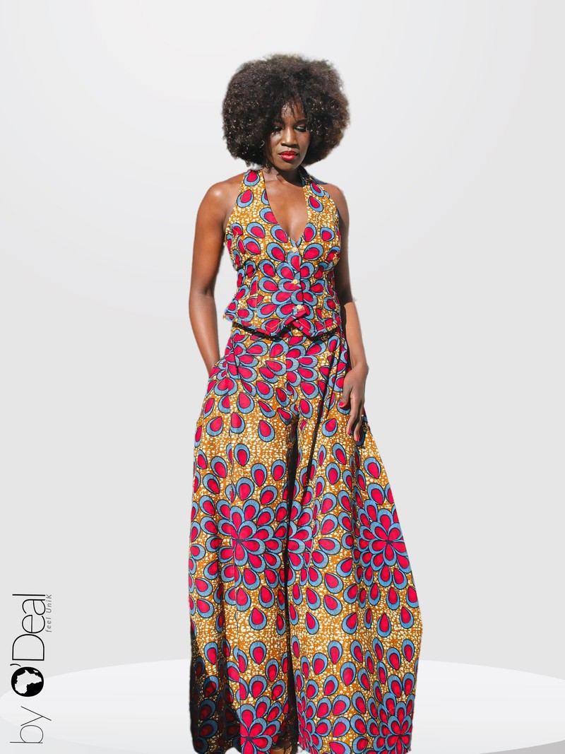 Craquez pour ce pantalon jupe en imprimé wax qui vous assurera un look chic et authentique