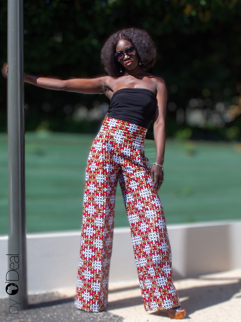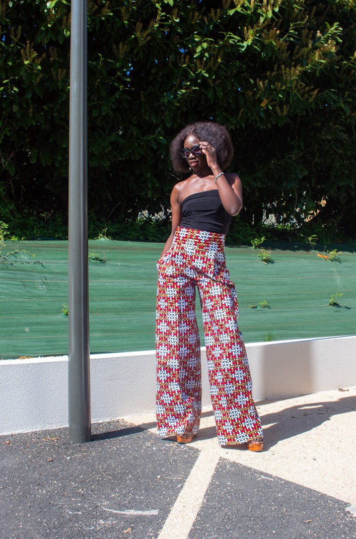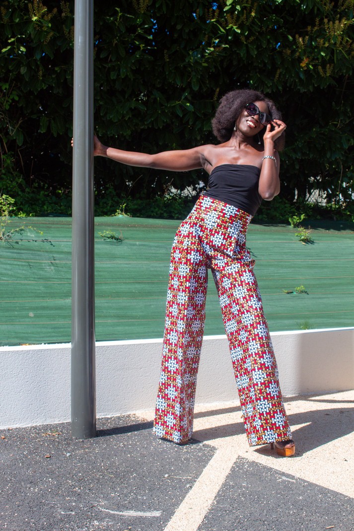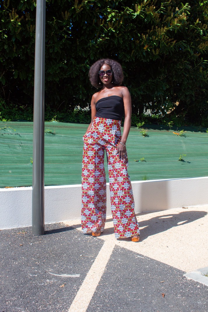 Craquez pour ce pantalon large taille haute en imprimé wax qui vous assurera un look chic et authentique