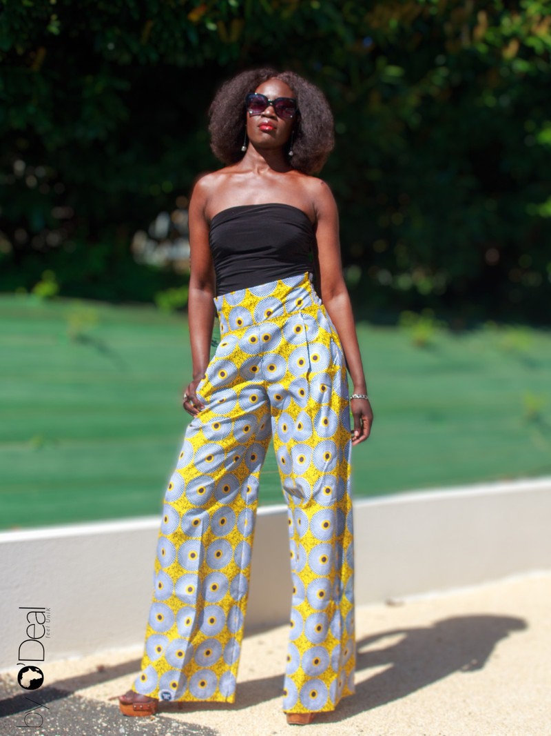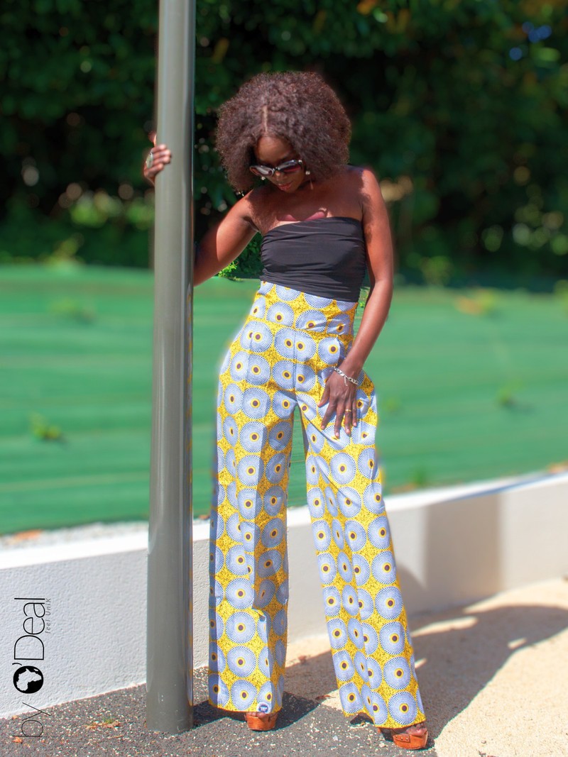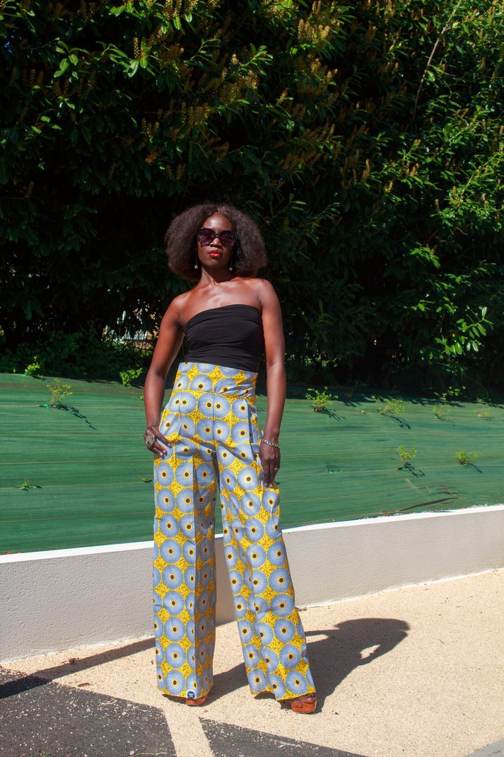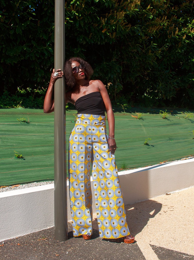 Craquez pour ce pantalon large taille haute en imprimé wax qui vous assurera un look chic et authentique