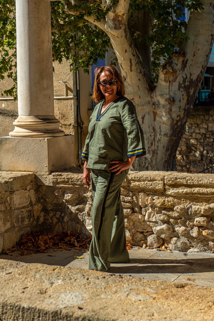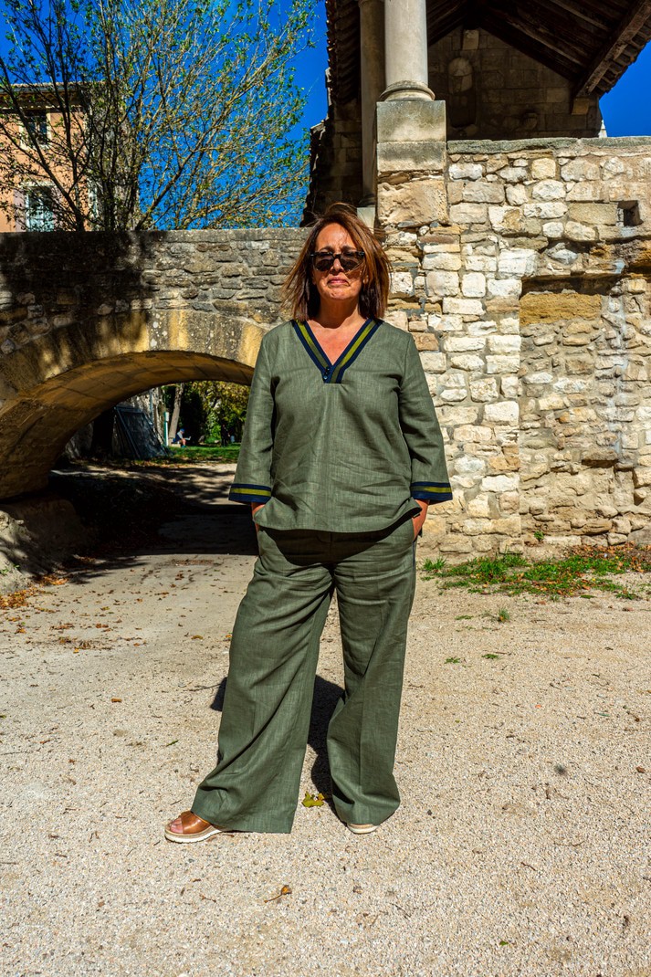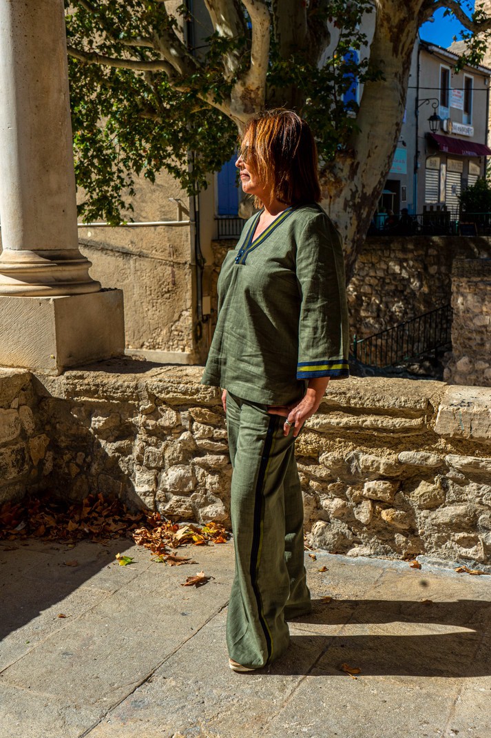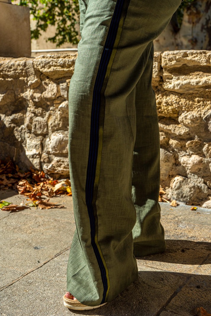 Femme Pantalons Pantalons Taille Haute name_fr: Vert name_fr: Kaki name_fr: Pour Elle name_fr: Pagne Tisse name_fr: Lin