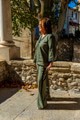 Dans cette version kaki profond, les bandes latérales en tissu Aso Oke nigérian apportent une touche noble et discrète, entre sobriété et caractère.
