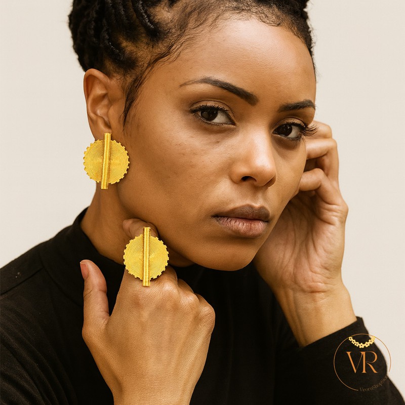Le set “Rayons d’Or” incarne une élégance audacieuse inspirée des bijoux artisanaux africains.