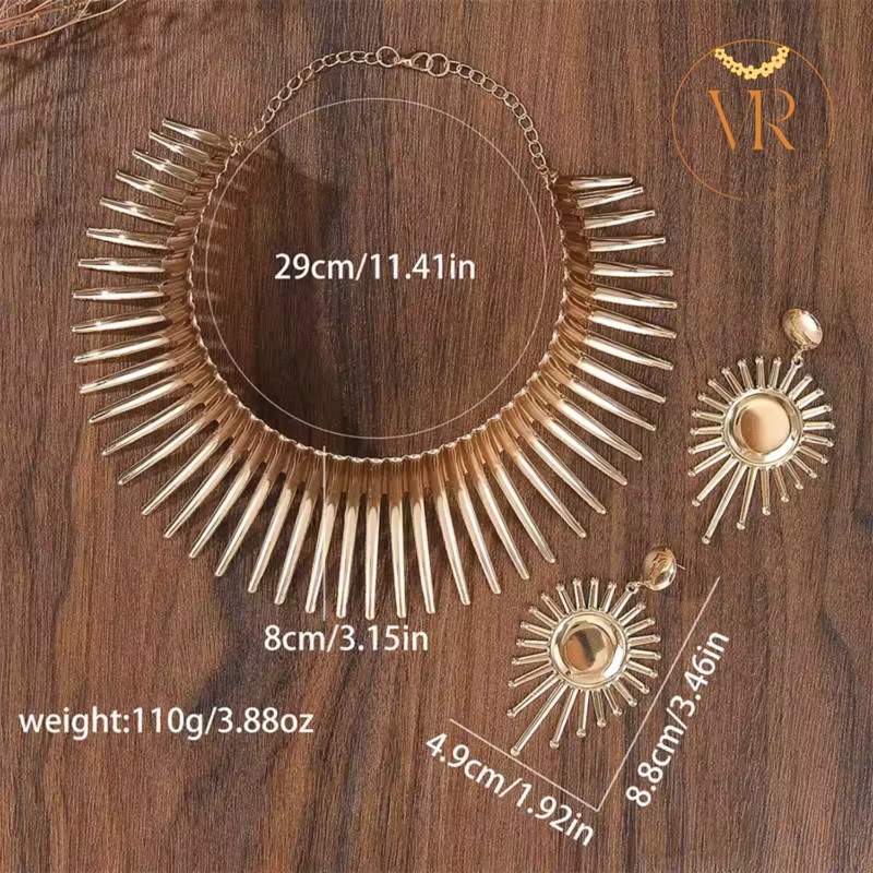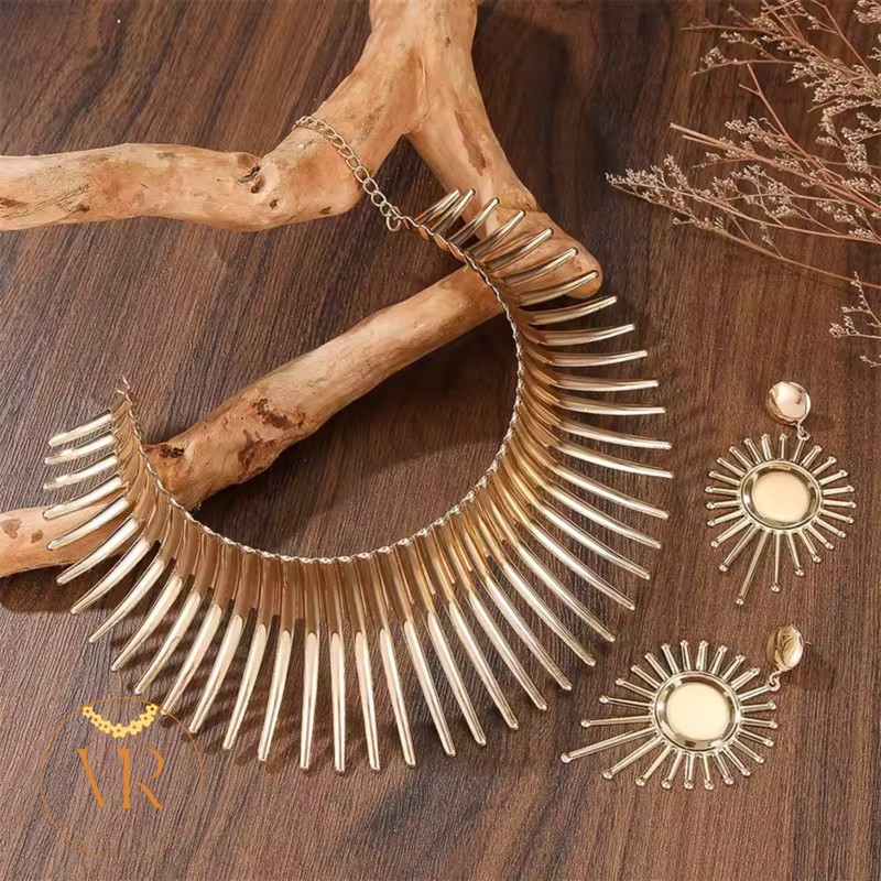 Set “Solar Queen” – Collier & Boucles d’Oreilles Dorés
