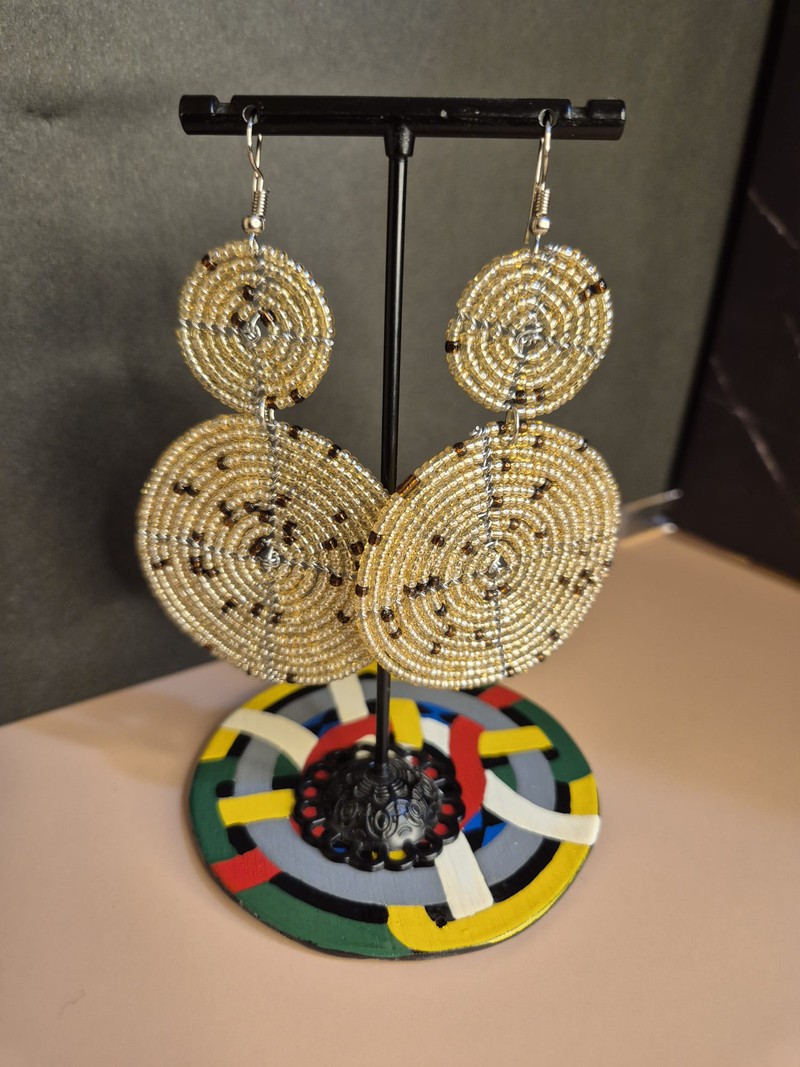 Boucles d’oreilles artisanales en perles Apportez une touche de couleur et d’originalité à votre style avec ces magnifiques boucles d’oreilles rondes, entièrement faites à la main. Détails : - Forme : pendantes - Matière : perles multicolores - Style : artisanal, ethnique et élégant Idéales pour égayer vos tenues quotidiennes ou apporter une note festive à vos sorties.