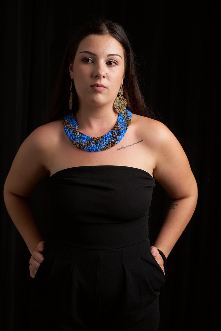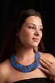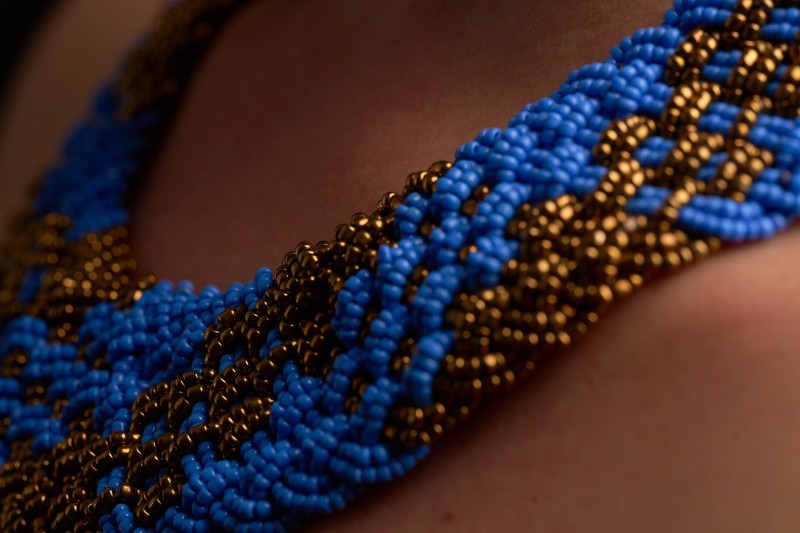 Sublimez votre style avec ce collier tressé en perles bleues et dorées, entièrement fait main.