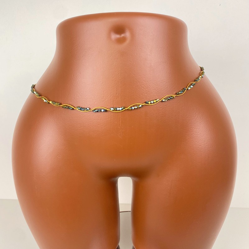 Sublimez vos courbes avec notre baya artisanale, également appelée perle de taille ou bijou de hanche. Fabriquée à la main avec des perles décoratives montées sur un fil transparent et extensible, elle allie confort, élégance et tradition.