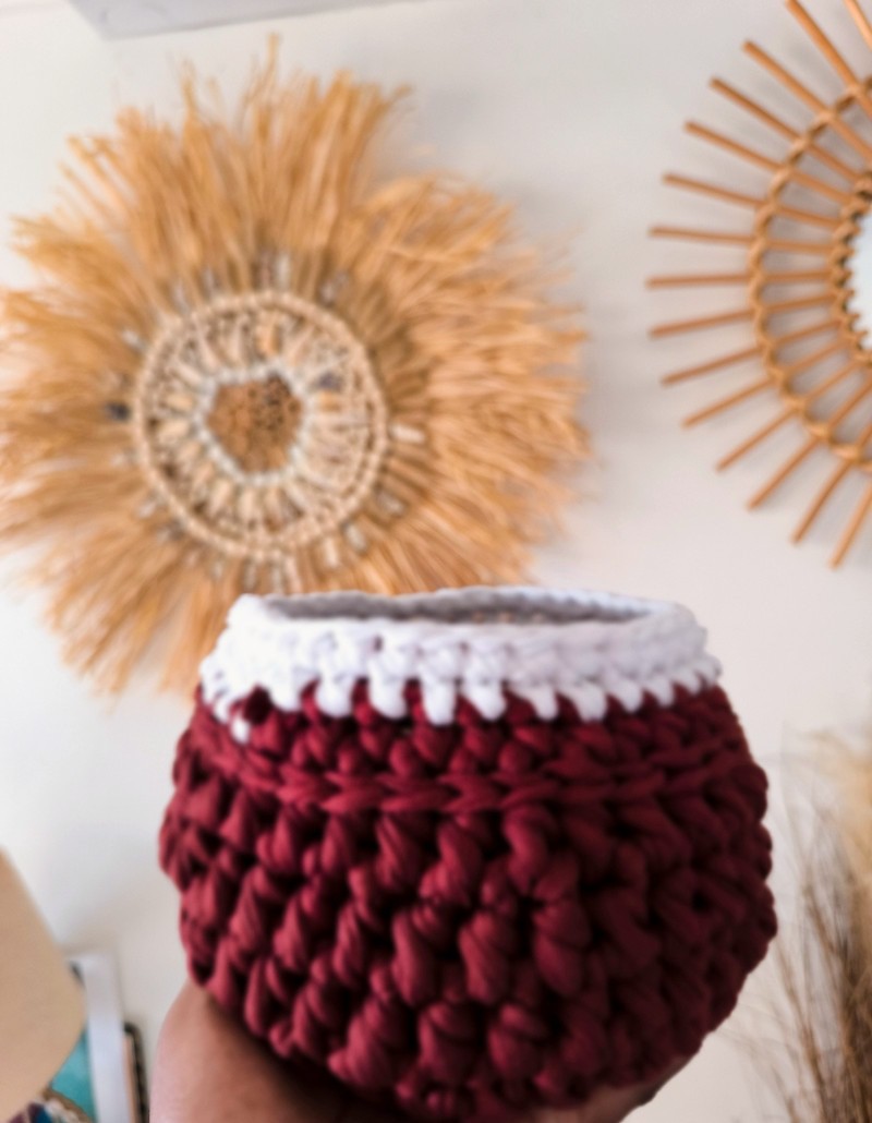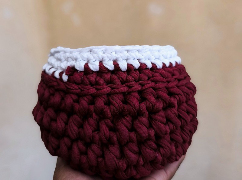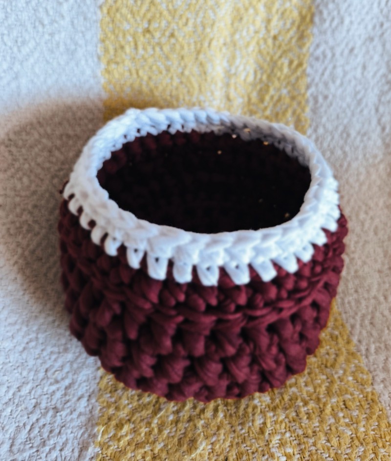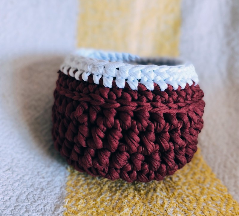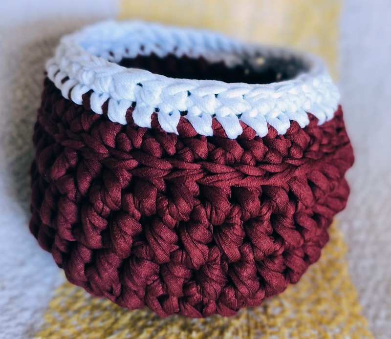 Petite Corbeille de rangement Fait main au crochet Matière : fil de tee-shirt