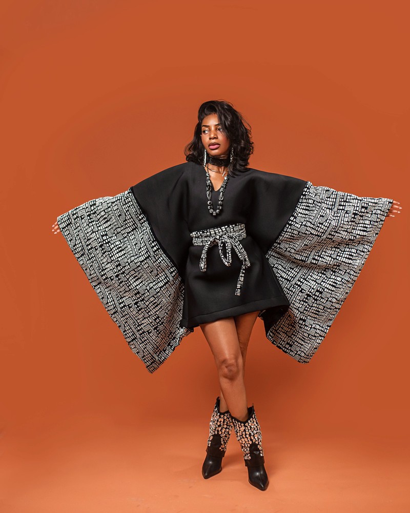 Boubou en neoprene lourd et daim. Idéale pour les sorties et cérémonies culturelles.
