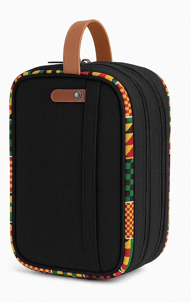 Add a best-selling travel essential to your retail or corporate collection with our Premium African Print Toiletry Bags. Designed with a sleek black body, vibrant African trim, and durable construction, these bags offer both style and functionality—making them ideal for boutiques, gift stores, travel brands, online marketplaces, and corporate gifting programs. Key Features Double Compartments: Two spacious zipper sections for efficient organization of toiletries, cosmetics, grooming tools, and travel essentials. Durable Metal Zippers: Built for long-term use, smooth operation, and reliability during travel. Premium Leather Handle: Strong, comfortable, and professionally crafted for daily handling. Authentic African Print Trim: Bold Ankara/Kente-inspired detailing adds cultural appeal and enhances product value. Structured and Protective Design: Maintains its shape, keeps items secure, and presents well on retail shelves. Benefits for Wholesale Buyers High Retail Demand: A practical, attractive item that appeals to a wide customer base. Suitable for Men and Women: A versatile unisex design that sells across various market segments. Excellent for Corporate Gifting: Professional look, export-grade quality, and customizable branding options. Strong Margins: Premium craftsmanship supports competitive retail pricing. Reliable Production: Consistent supply for ongoing wholesale or bulk needs. Material and Size Material: Premium canvas exterior, leather handle, metal zippers, African print trim Size: Standard travel toiletry capacity (L-25cm, W-10cm, H-15cm) (custom sizes available on request) Customization Options Custom branding and logo placement Choice of African print trims Leather color variations Custom packaging for corporate or bulk orders For customization requests: [email protected] Minimum Order Quantity (MOQ) 10 pieces per design Suitable for wholesale buyers, resellers, boutique owners, and corporate procurement teams. Worldwide Delivery We ship globally using trusted courier partners. All products are packaged in export-grade cartons to ensure safe delivery. Call to Action Enhance your product lineup with our premium African Print Toiletry Bags. Contact us today to place your wholesale order or request custom branding options.