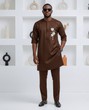 Elevate your style with this premium men's senator set, designed with a modern, relaxed silhouette that blends elegance and comfort. The top features a 3-quarter length cut with a smooth round neckline and a clean front placket, offering a refined and timeless look. A subtle embroidery detail on the chest enhances the outfit with a touch of sophistication. Paired with matching straight-cut trousers, this set delivers a polished appearance suitable for weddings, celebrations, office functions, church, and stylish everyday wear. Crafted from high-quality fabric for durability and a luxurious feel, this outfit is perfect for men who appreciate premium tailoring and effortless class. Color: Chocolate brown Material: High-quality premium fabric (breathable & durable) Top Style: 3-quarter length senator kaftan (relaxed fit) Trousers: Straight-cut, comfortable fit Embroidery: Subtle chest embroidery Sleeve Length: 3/4 sleeve Neckline: Round neck with front placket Fit: Tailored but not slim-fit Design Style: Modern, minimal, elegant Occasion: – Weddings – Traditional ceremonies – Office events – Church – Casual luxury outings – Celebrations & parties Package Includes: Top + Trousers Custom-Made (Send Your Measurements) For a perfect tailored fit, customers can send their measurements. Please provide: Neck Shoulder to Shoulder Chest Stomach / Midsection Waist Hips Top Length Sleeve Length (3/4 or Full, depending on preference) Biceps / Arm Round Wrist (if applicable) Trousers Length Thigh Knee Ankle Inseam