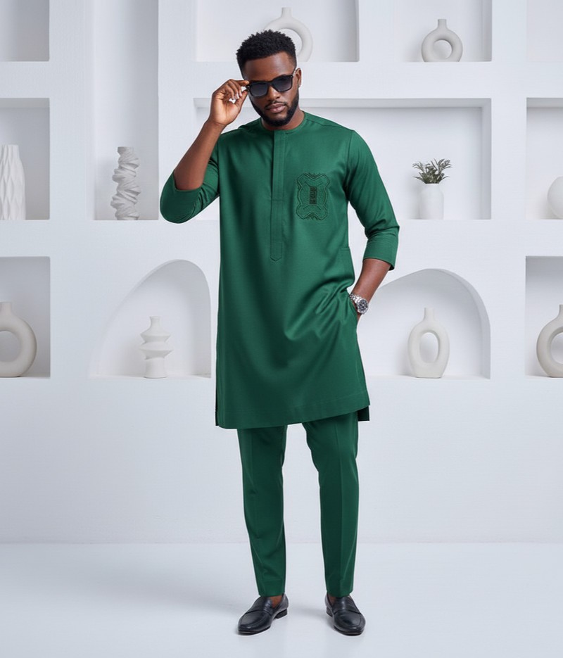 Elevate your style with this premium men's senator set, designed with a modern, relaxed silhouette that blends elegance and comfort. The top features a 3-quarter length cut with a smooth round neckline and a clean front placket, offering a refined and timeless look. A subtle embroidery detail on the chest enhances the outfit with a touch of sophistication. Paired with matching straight-cut trousers, this set delivers a polished appearance suitable for weddings, celebrations, office functions, church, and stylish everyday wear. Crafted from high-quality fabric for durability and a luxurious feel, this outfit is perfect for men who appreciate premium tailoring and effortless class. Color: Green Material: High-quality premium fabric (breathable & durable) Top Style: 3-quarter length senator kaftan (relaxed fit) Trousers: Straight-cut, comfortable fit Embroidery: Subtle chest embroidery Sleeve Length: 3/4 sleeve Neckline: Round neck with front placket Fit: Tailored but not slim-fit Design Style: Modern, minimal, elegant Occasion: – Weddings – Traditional ceremonies – Office events – Church – Casual luxury outings – Celebrations & parties Package Includes: Top + Trousers Custom-Made (Send Your Measurements) For a perfect tailored fit, customers can send their measurements. Please provide: Neck Shoulder to Shoulder Chest Stomach / Midsection Waist Hips Top Length Sleeve Length (3/4 or Full, depending on preference) Biceps / Arm Round Wrist (if applicable) Trousers Length Thigh Knee Ankle Inseam Kaftan Nigeria Kaftan Lagos Men's Kaftan African kaftan for men 3/4 sleeve kaftan Three quarter kaftan Men's senator wear Native wear for men Men's traditional wear Nigeria Kaftan styles 2024 Kaftan designs Nigeria Tailored kaftan for men African menswear Lagos fashion men Men's embroidered kaftan Men's agbada kaftan hybrid Premium men's native wear Kaftan outfit for weddings Men's event wear Nigeria Custom-made kaftan