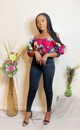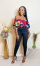 Haut style corset crop top à manches 3/4 bouffantes.