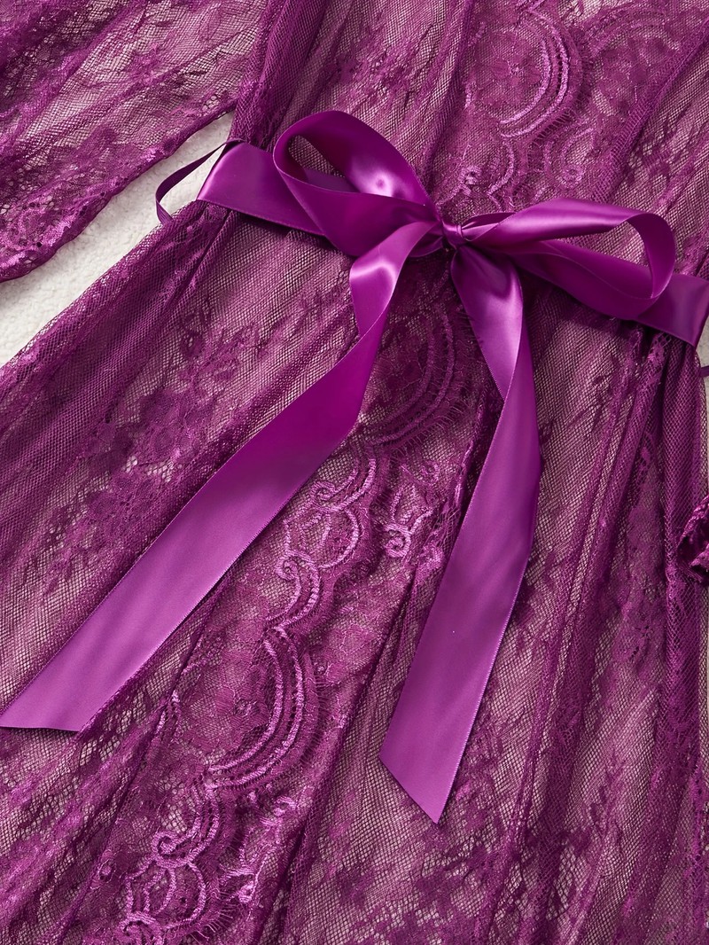Sheer Long Robe + Body Suit with Scallop Decoration