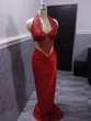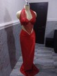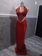 Femme Robes Robes longues name_fr: Colle Au Corps name_fr: Rouge name_fr: Pour Elle name_fr: Dentelle name_fr: Satin