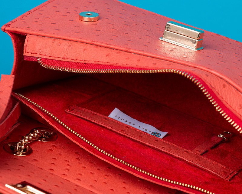 Make a bold statement with our luxurious red leather bag. Crafted from high quality genuine leather this bag is both stylish and durable. The classic design features a spacious interior, perfect for organizing your essentials. The rich red color adds a pop of sophistication to any outfit, making it perfect for any occasion. Whether you are dressing up or dressing down this bag is sure to turn heads.