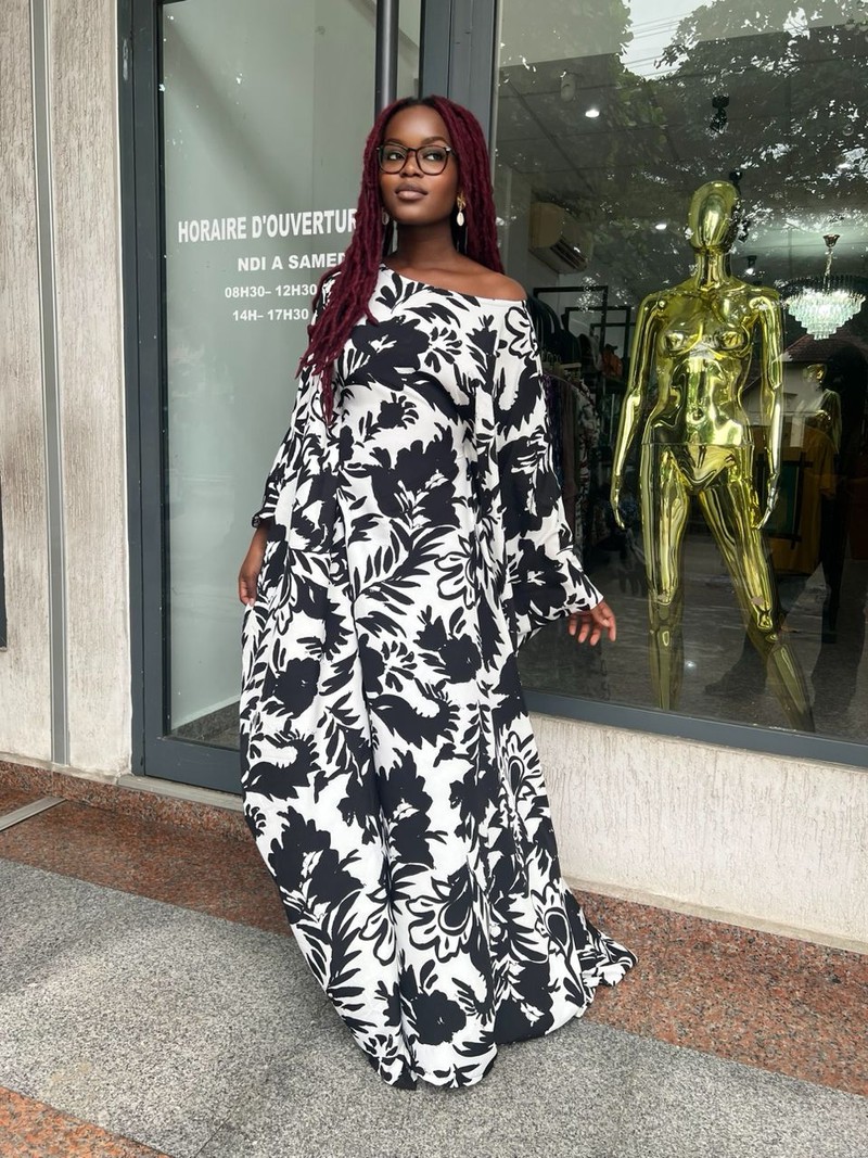 La robe Mukaji est une ode à l’élégance fluide et à la grâce assumée. Sa coupe ample et majestueuse épouse le mouvement avec légèreté, évoquant la liberté et la puissance du cœur féminin. Conçue pour envelopper le corps tout en laissant respirer l’âme, Mutshima se décline en motifs vibrants et contrastés, parfaits pour magnifier la beauté naturelle de chaque femme. Une pièce forte, poétique, et intemporelle.