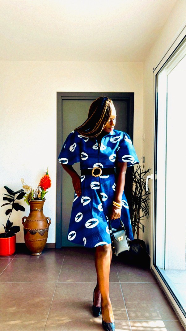 Idéale pour une occasion spéciale, une journée au bureau ou une sortie entre amis, cette robe en Wax bleu profond vous assure un style à la fois élégant et confortable.