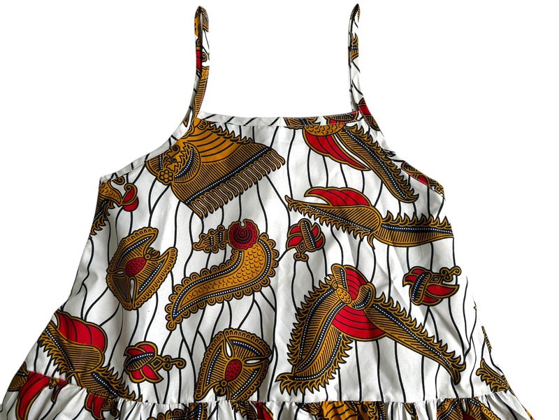ROBE D’ÉTÉ SOUZA- ENTRE LÉGÈRETÉ ET STYLE Légère, joyeuse et pleine de caractère, cette robe d’été à bretelles est à la pièce idéale pour accompagner ta petite princesse pendant les journées ensoleillées. Description: Tissu 100% coton en wax, doux , respirant et agréable à porter Bretelles fines pour un look féminin et estival Coupe fluide qui laisse une grande liberté de mouvement Chaque modèle est unique Idéale pour: Les balades estivales Les vacances au soleil Les fêtes et événements familiaux Se sentir belle, libre et stylée au quotidien. Livraison & retours: Livraison rapide en 3 à 5 jours ouvrés Retour accepté sous 14 jours ( voir conditions sur le site) Frais de port offerts dès 100€ d’achat ❤️Le mot de MPESA : Cette robe incarne la liberté, la douceur de l’été et la fierté d’une culture riche en couleurs. C’est une invitation à célébrer l’enfance avec style et légèreté, tout en valorisant l’identité afro. Ajoute-la au panier avant qu’il n’y en ait plus !