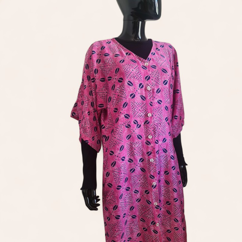 Magnifique robe longue en soie, manches kimono, boutonnés sur le devant