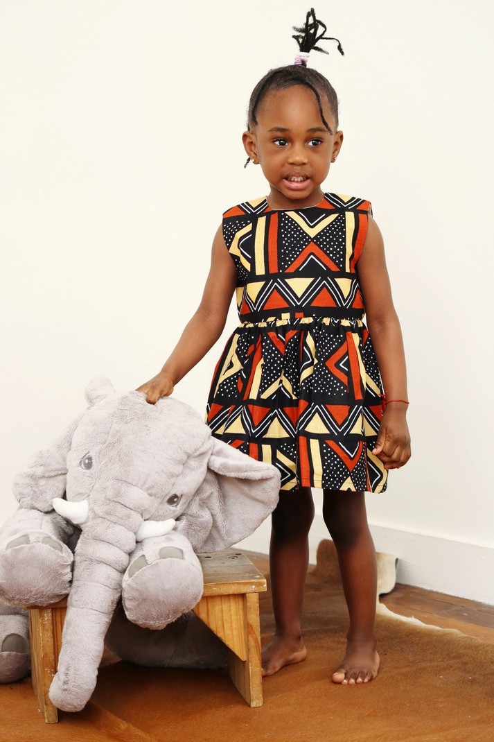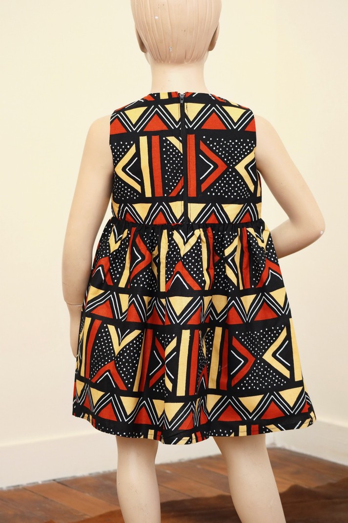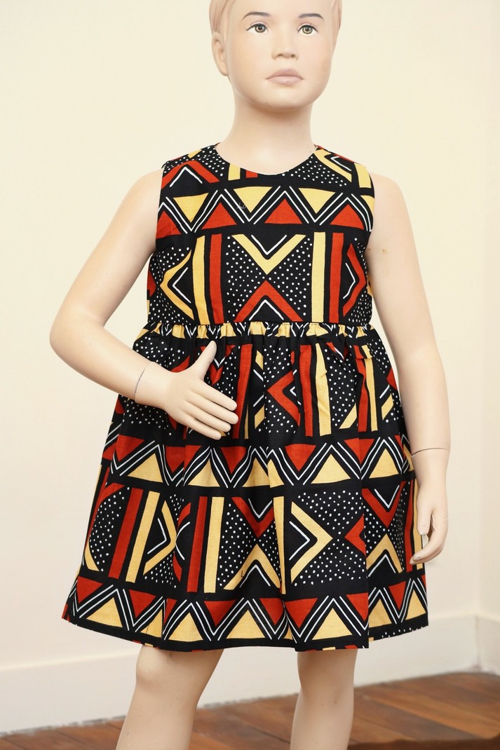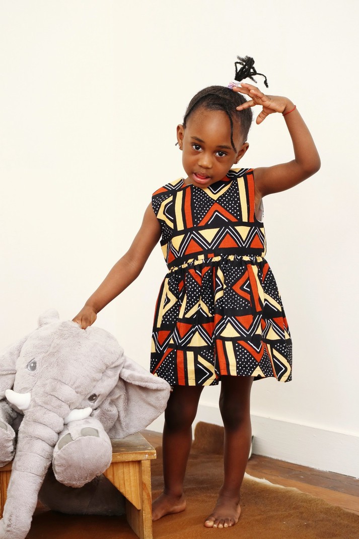 Cette petite robe d'été en coton wax aux imprimés Bologan se portera pour toutes les occasions. Dans cette création au tissu classique votre enfant sera rayonnante.