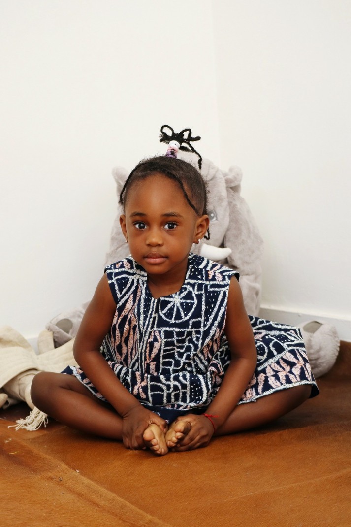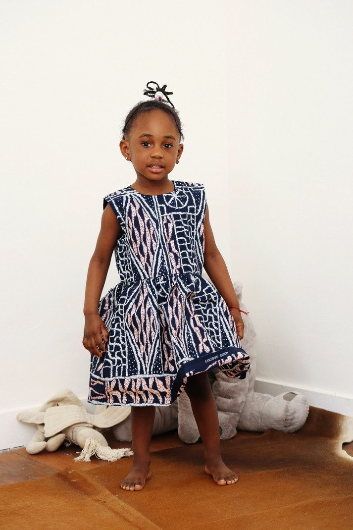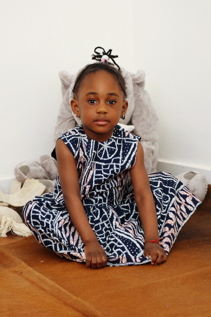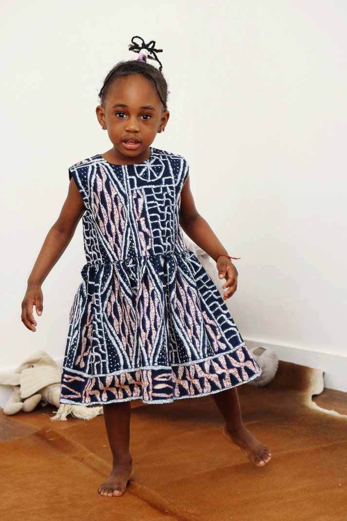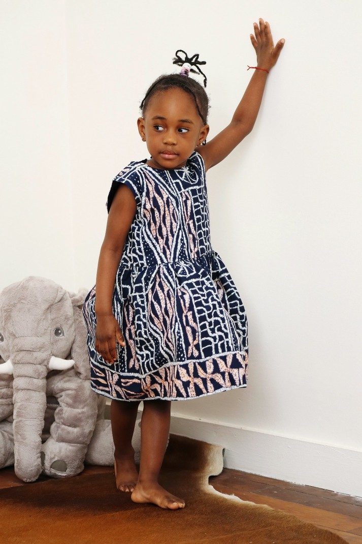 Cette petite robe d'été en coton aux imprimés wax se portera pour toutes les occasions. Dans cette création au tissu classique "Ndop bleu rose" votre enfant sera rayonnante.