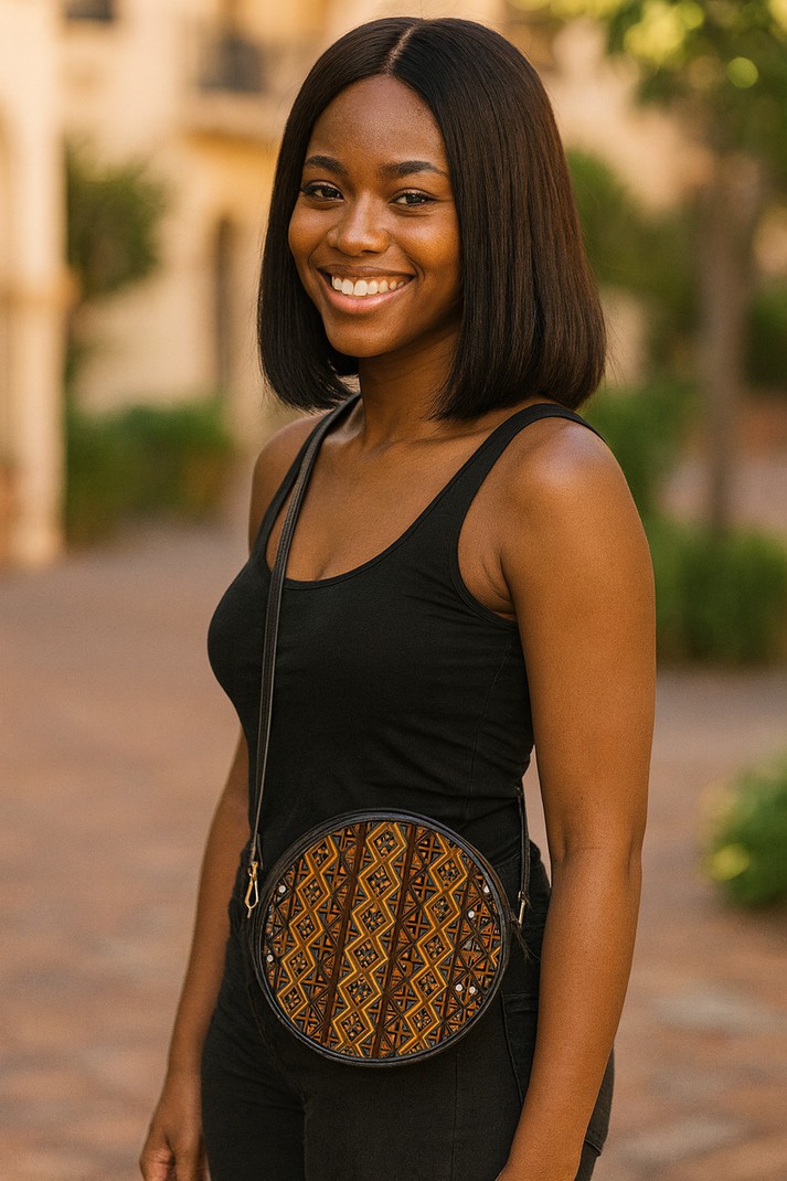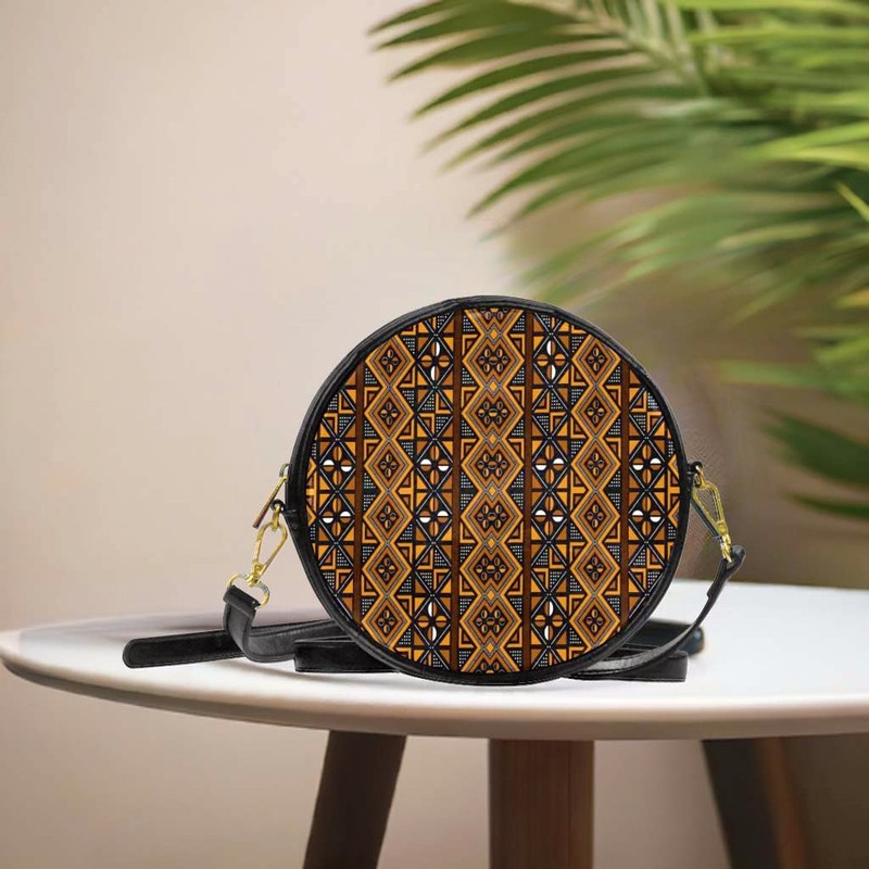 Introducing our Round Shoulder Bag in the unique and eye-catching African Mud Cloth design. This sling style bag is not only stylish, but also practical with its spacious interior and comfortable shoulder strap. Stand out and make a statement with this one-of-a-kind accessory. Product Description * 8.22 Oz. Made from high-grade PU leather. * Single zippered round closure. * One main compartment, big enough to pack cosmetic, sunglasses, Phone and etc. *Adjustable PU leather shoulder strap for easy and comfortable carrying. * Dimensions: 8.07"(L) x 2.07"(W) x 8.07"(H). Delivery Time This item will be processed within 3-7 business days (Excluding Weekends and Holidays). Once products ships it can take up to 15 Business days depending on your location. Out of Stock items can be requested by emailing us at [email protected] Care Instructions Machine wash cold inside out. Gentle cycle with mild detergent and like colors. Do not use bleach or fabric softener. Do not tumble dry to ensure maximum shelf life.