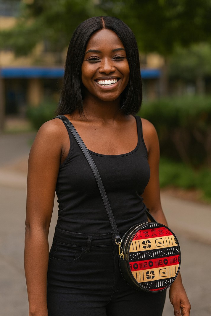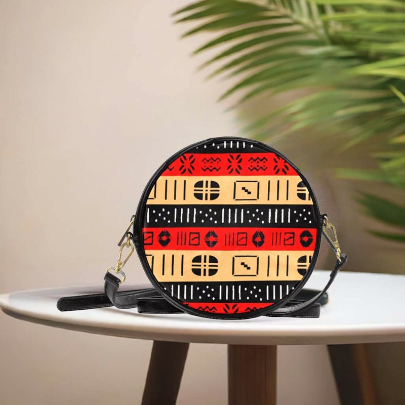 This vibrant and unique round sling bag showcases a colourful tribal print, perfect for adding a touch of African culture to any outfit. Crafted with a durable sling design, it provides a stylish and comfortable way to carry your essentials on the go. Embrace the beauty of African fashion with this statement bag!