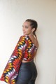 .This beautiful vibrant top is the perfect cute African print cute crop top.One hand with long and open sleeves.