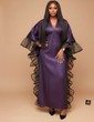 Order the room in this regal purple Shift Dress. Crafted from lustrous satin-finish fabric, this piece is defined by its dramatic, architectural sleeves. Cascading layers of iridescent, sheer organza ruffles run down the sides, creating an ethereal "angel wing" effect. The loose, comfortable fit ensures you look effortlessly glamorous without compromising on comfort. Perfect For, High-tea events, wedding guests, or religious ceremonies. Material: Satin and sheer organza Color: purple
