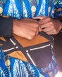 La fermeture du sac est être à glissière, dotée d'une poche intérieure. Il est équipé d'une bandoulière réglable pour un confort optimal. Composé d'une face uni noir, et la 2émé face customisé en bogolan.