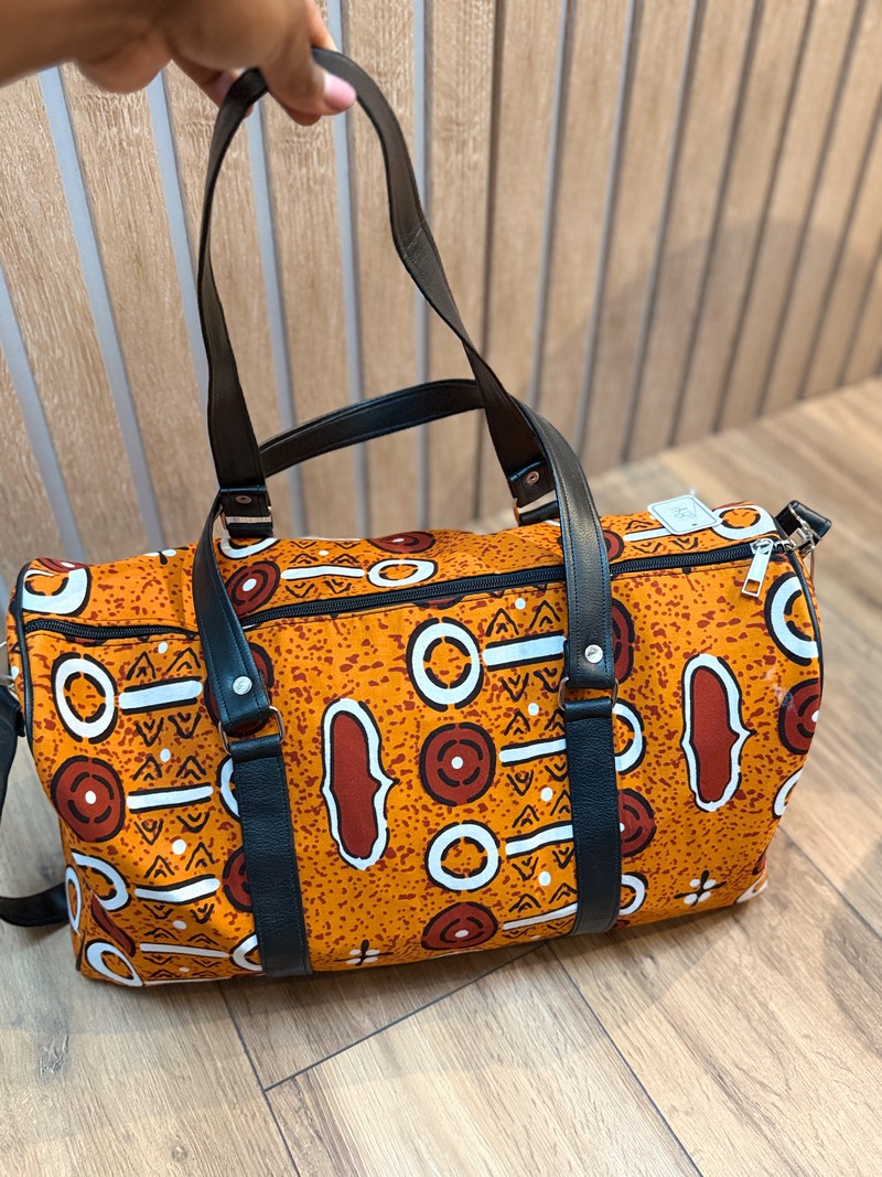 Voyagez avec élégance grâce à ce sac de voyage en tissu Wax, fait main avec soin. Conçu pour allier solidité et style, il vous accompagne partout, que ce soit pour une escapade le temps d’un week-end ou un long séjour.