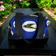 La base extérieure du sac est en jean denim.