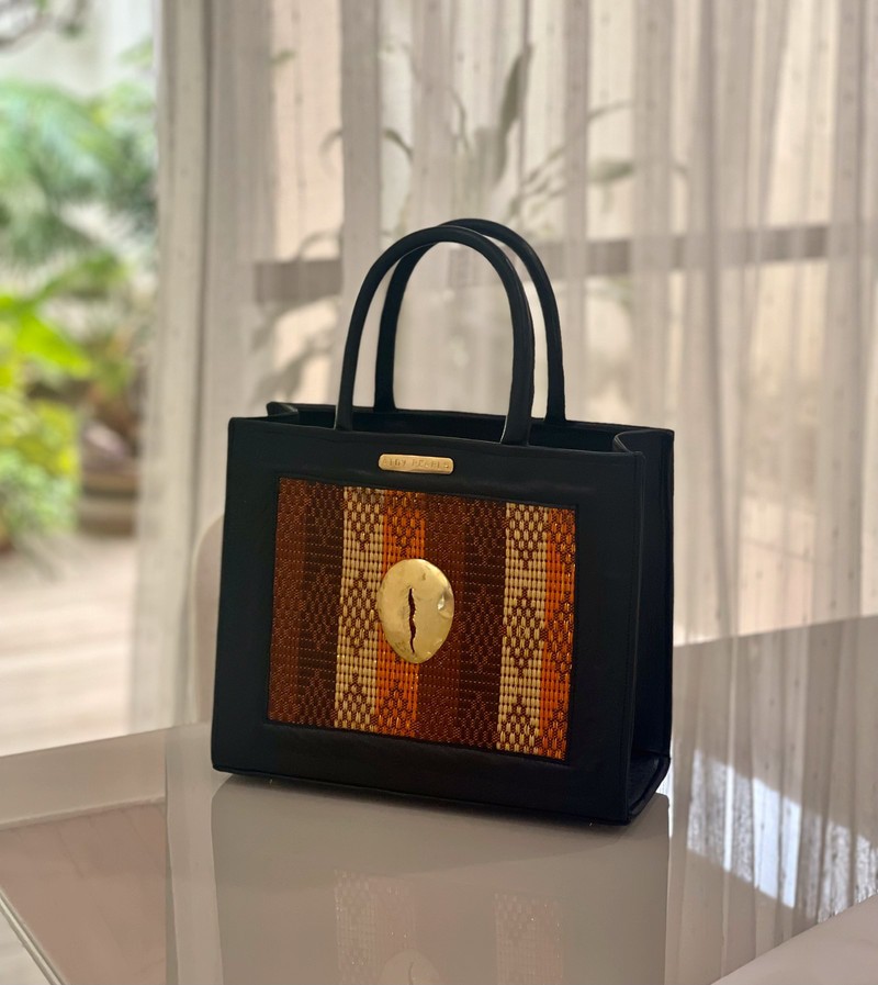 ✔️ Matières : cuir, pagne tissé du Ghana Kente et détails en bronze (finitions en or fin)