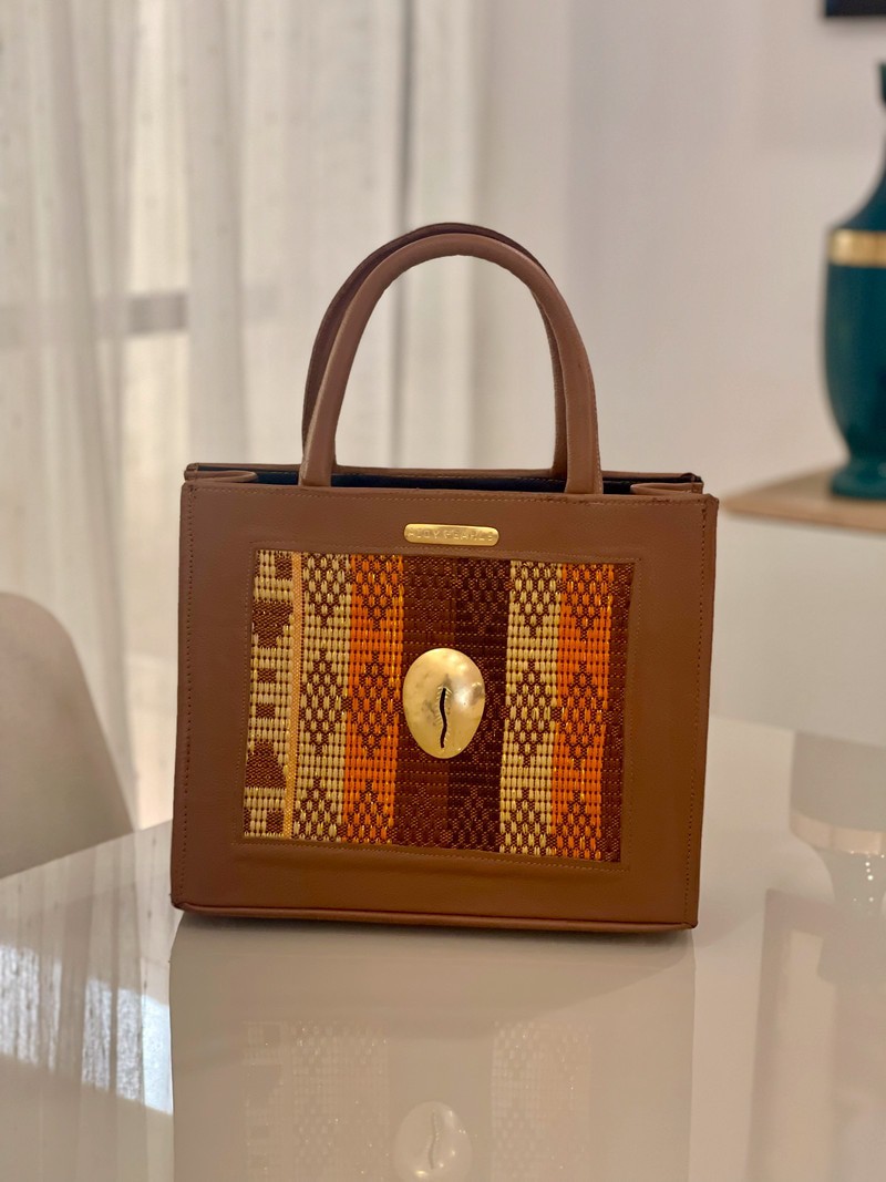 ✔️ Matières : cuir, pagne tissé du Ghana Kente et détails en bronze (finitions en or fin)
