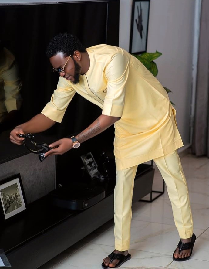 This is a unique classy outfit. Meticulously tailored with high quality fabrics. It comes with a top and a matching pant. Tailored to fit nicely (not too tight and not too loose). Available in all colors and sizes depending on your specifications.