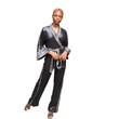 Sequin and Animal Print Mix Kimono Pyjama Jumpsuit with stripe detailing.