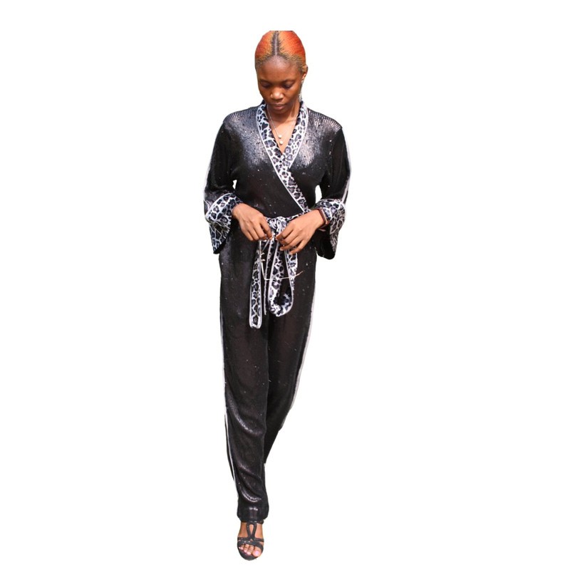 Combinaison pyjama kimono à sequins et imprimés animaliers avec rayures. Disponible dans d'autres tissus. Combinaison parfaite subtilement sexy pour une fête ou tout événement social. Elle est douce au toucher et fluide. Très confortable et facile à porter. Tissu : polyester Entretien du tissu : nettoyage à sec uniquement Produit dans un environnement exempt de parasites, de fumée et de poussière. Le modèle mesure 6 pieds de haut. Veuillez noter que les mesures dans le guide des tailles sont générales et une commande personnalisée peut être faite en envoyant les mesures suivantes : • Buste (Autour du buste sous le bras. Devrait être confortablement libre) • Taille • Épaule (d'un os de l'épaule à travers votre nuque à l'autre os de l'épaule) • Hanches (Autour de la partie la plus large de votre hanche) • Longueur (De votre épaule aussi longtemps que vous préférez) Expédition : Via DHL 5 à 7 jours ouvrables après l'achat.