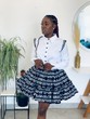 Our skater skirt is made from Ankara cotton fabric. It is perfectly layered for that playful look.