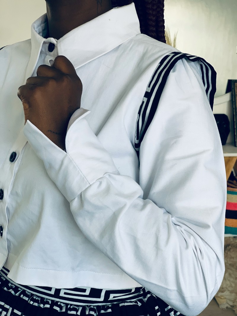 Our cropped shirt is made from a stretch cotton fabric for a perfect and comfortable fit with a touch of Ankara