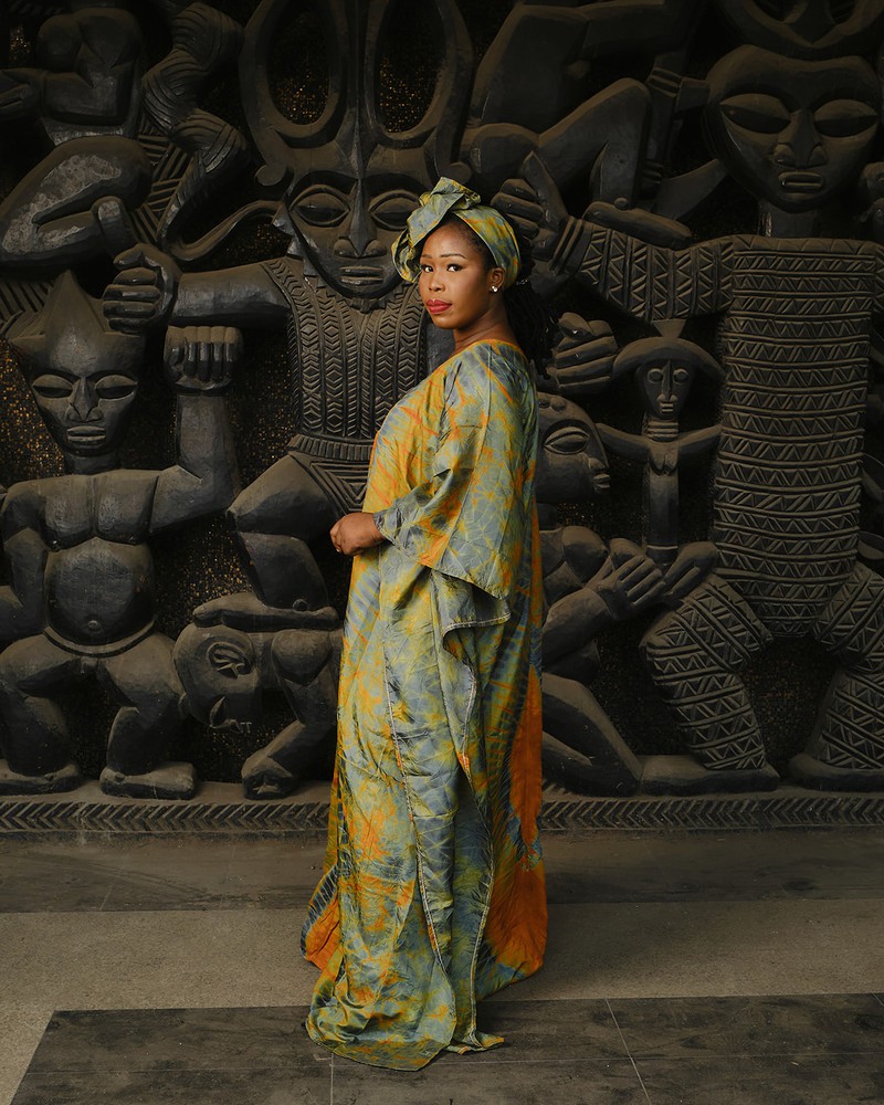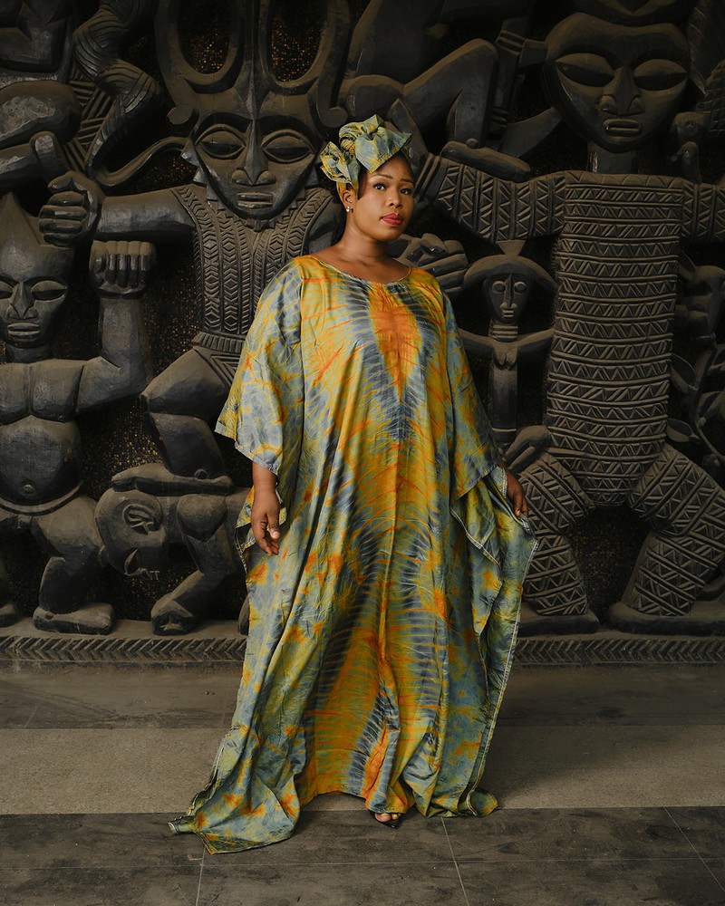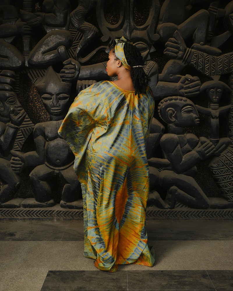 Introducing the epitome of elegance and luxury - our stunning long silk boubou dress. Crafted from the finest quality silk, this dress drapes effortlessly over your curves, creating a timeless silhouette that is sure to turn heads. Sesotho is perfect for all occasions you want to make a statement. Note: Fabric color and pattern may vary slightly as it is hand-dyed by our local artisan community Highlights Maxi length dress Free-hand elbow-length sleeves Matching adire headwrap Fabric/Material: Silk Adire Availability: Made to order Care instruction: Gentle machine wash/ Hand wash (do not bleach) Iron with low heat. Color variant: Green & Yellow