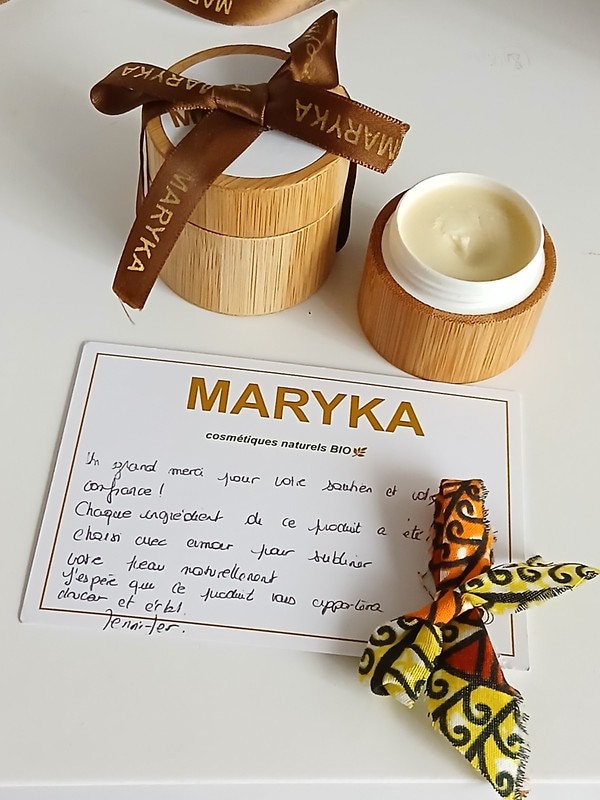 Beurre de Karité Pur & Naturel – Format 50 g Le beurre de karité 100% brut MARYKA est un indispensable beauté pour nourrir, protéger et sublimer la peau au quotidien. Issu d’une fabrication artisanale et conditionné dans un élégant pot en bambou MARYKA, il fond délicatement au contact de la peau et laisse un fini velouté, lumineux et intensément hydraté. 🤎✨ ✔️ Bienfaits du beurre de karité MARYKA 🧴 Hydrate profondément et nourrit durablement ✨ Adoucit et illumine la peau sèche, sensible ou irritée 🥥 Répare et apaise (zones sèches, coudes, talons, mains, lèvres…) 🌿 100% naturel – sans parfum, sans additif 👶 Convient à toute la famille, même les peaux délicates ✋ Fond sur la peau pour un massage doux, apaisant et protecteur ✔️ Un format pratique à emporter partout Le pot de 50 g est parfait pour : le sac à main 👜 les voyages ✈️ une utilisation quotidienne ciblée (visage, mains, lèvres) découvrir la qualité MARYKA avant d’opter pour un format plus grand Son packaging en bambou ajoute une touche élégante, naturelle et premium à votre routine beauté.