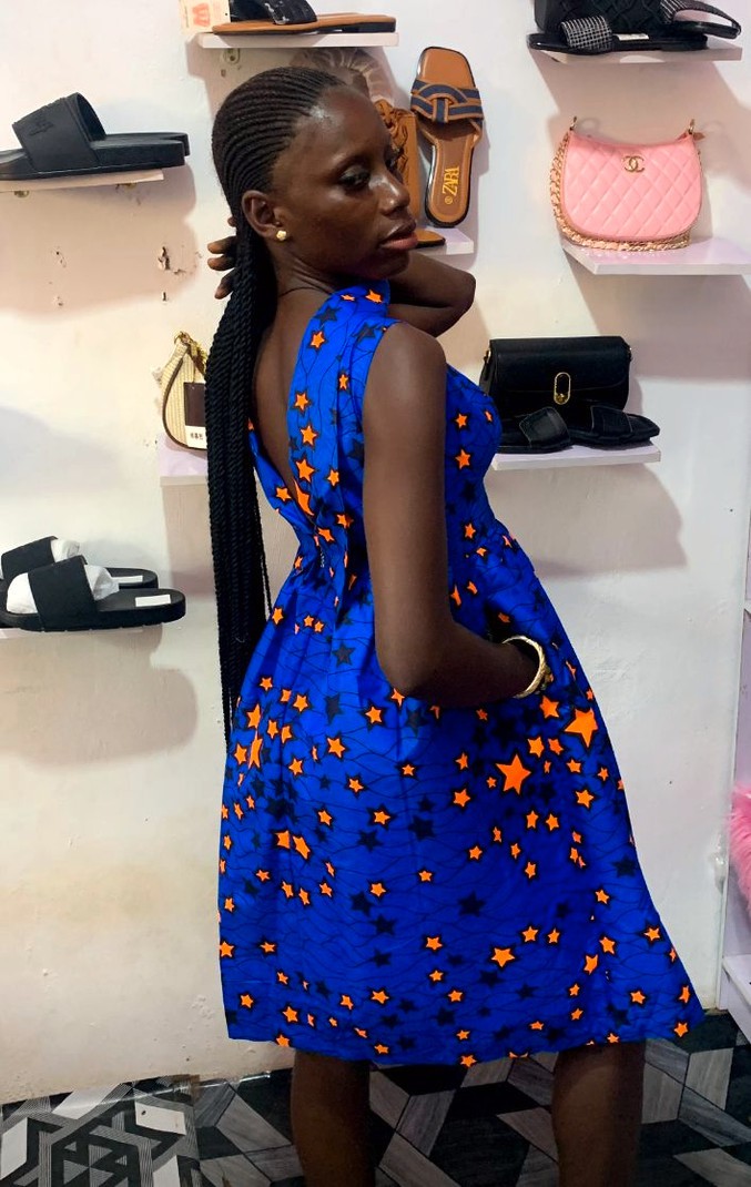 Femme Robes Robes Mi- longues name_fr: Poupée name_fr: Evasé name_fr: Bleu name_fr: Pour Elle name_fr: Wax